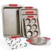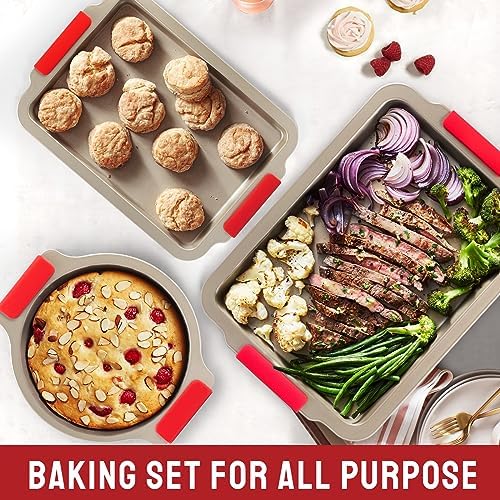 [Easy To Use & Comfortable Grip] Each baking pan is designed with extra-wide, easy to hold handles with removable silicone that offer an outstanding grip when transferring from oven to table surface. After each use, wash with dishwashing soap and warm water or pop them into a dishwasher for fast and easy cleaning. Store in a cool dry place for long-term endurance